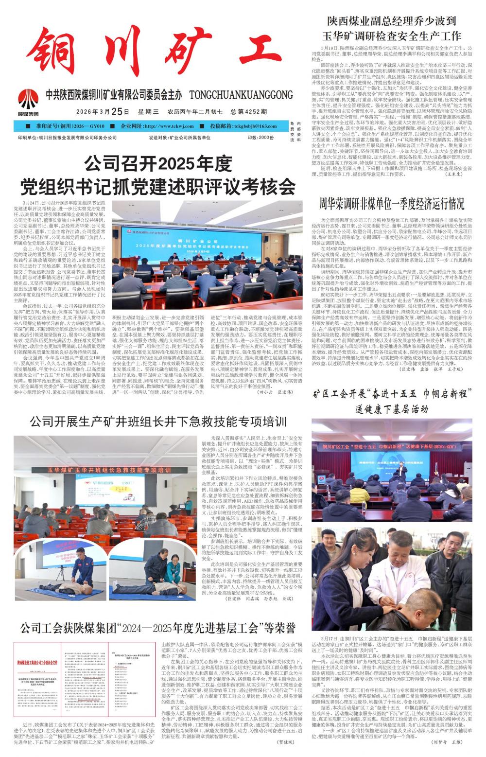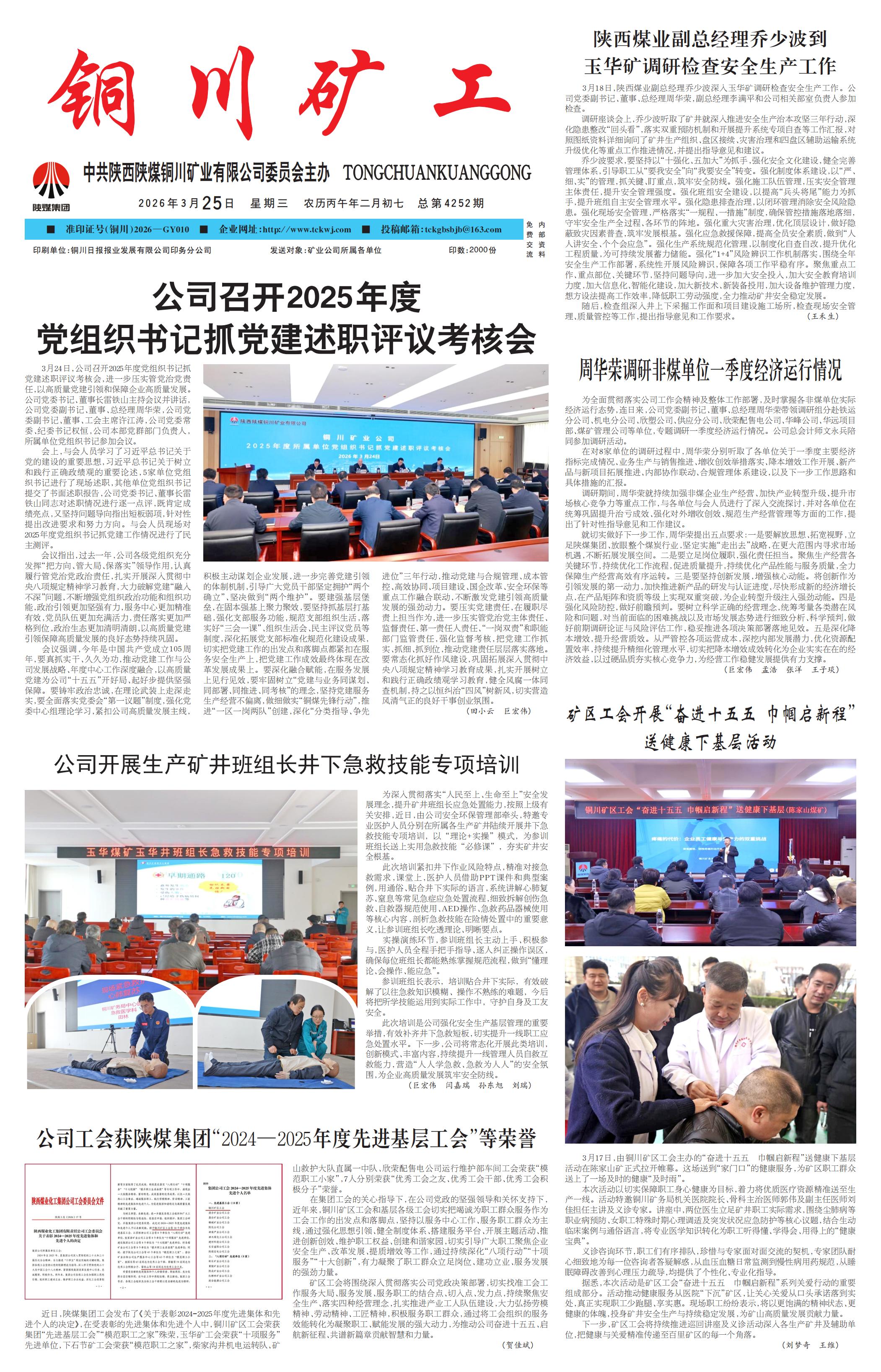 3月24日,公司召开2025年度党组织书记抓党建述职评议考核会,进一步压实管党治党责任,以高质量党建引领和保障企业高质量发展。公司党委书记、董事长雷铁山主持会议并讲话,公司党委副书记、董事、总经理周华荣,公司党委副书记、董事、工会主席许江涛,公司党委常委、纪委书记权恒,公司本部党群部门负责人,所属单位党组织书记参加会议。 会上,与会人员学习了习近平总书记关于党的建设的重要思想,习近平总书记关于树立和践行正确政绩观的重要论述,5家单位党组织书记进行了现场述职,其他单位党组织书记提交了书面述职报告,公司党委书记、董事长雷铁山同志对述职情况进行逐一点评,既肯定成绩亮点,又坚持问题导向指出短板弱项,针对性提出改进要求和努力方向。与会人员现场对2025年度党组织书记抓党建工作情况进行了民主测评。 会议指出,过去一年,公司各级党组织充分发挥“把方向、管大局、保落实”领导作用,认真履行管党治党政治责任,扎实开展深入贯彻中央八项规定精神学习教育,大力破解党建“融入不深”问题,不断增强党组织政治功能和组织功能,政治引领更加坚强有力,服务中心更加精准有效,党员队伍更加充满活力,责任落实更加严格到位,政治生态更加清明清朗,以高质量党建引领保障高质量发展的良好态势持续巩固。 会议强调,今年是中国共产党成立105周年,要真抓实干、久久为功,推动党建工作与公司发展战略、年度中心工作深度融合,以高质量党建为公司“十五五”开好局、起好步提供坚强保障。要铸牢政治忠诚,在理论武装上走深走实,要全面落实党委会“第一议题”制度,强化党委中心组理论学习,紧扣公司高质量发展主线,积极主动谋划企业发展,进一步完善党建引领的体制机制,引导广大党员干部坚定拥护“两个确立”、坚决做到“两个维护”。要建强基层堡垒,在固本强基上聚力聚效,要坚持抓基层打基础,强化支部服务功能,规范支部组织生活,落实好“三会一课”、组织生活会、民主评议党员等制度,深化拓展党支部标准化规范化建设成果,切实把党建工作的出发点和落脚点都紧扣在服务安全生产上,把党建工作成效最终体现在改革发展成果上。要深化融合赋能,在服务发展上见行见效,要牢固树立“党建与业务同谋划、同部署、同推进、同考核”的理念,坚持党建服务生产经营不偏离,做细做实“铜煤先锋行动”,推进“一区一岗两队”创建,深化“分类指导、争先进位”三年行动,推动党建与合规管理、成本管控、高效协同、项目建设、国企改革、安全环保等重点工作融合联动,不断激发党建引领高质量发展的强劲动力。要压实党建责任,在履职尽责上担当作为,进一步压实管党治党主体责任、监督责任、第一责任人责任、“一岗双责”和职能部门监管责任,强化监督考核,把党建工作抓实、抓细、抓到位,推动党建责任层层落实落地。要常态化抓好作风建设,巩固拓展深入贯彻中央八项规定精神学习教育成果,扎实开展树立和践行正确政绩观学习教育,健全风腐一体同查机制,持之以恒纠治“四风”树新风,切实营造风清气正的良好干事创业氛围。