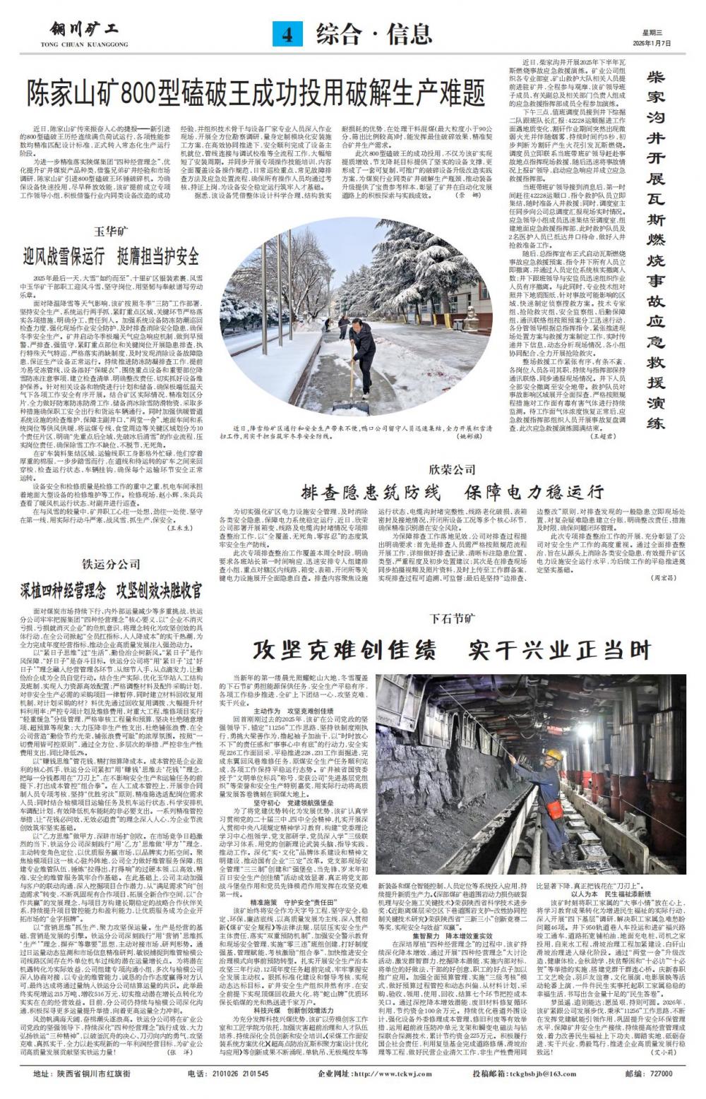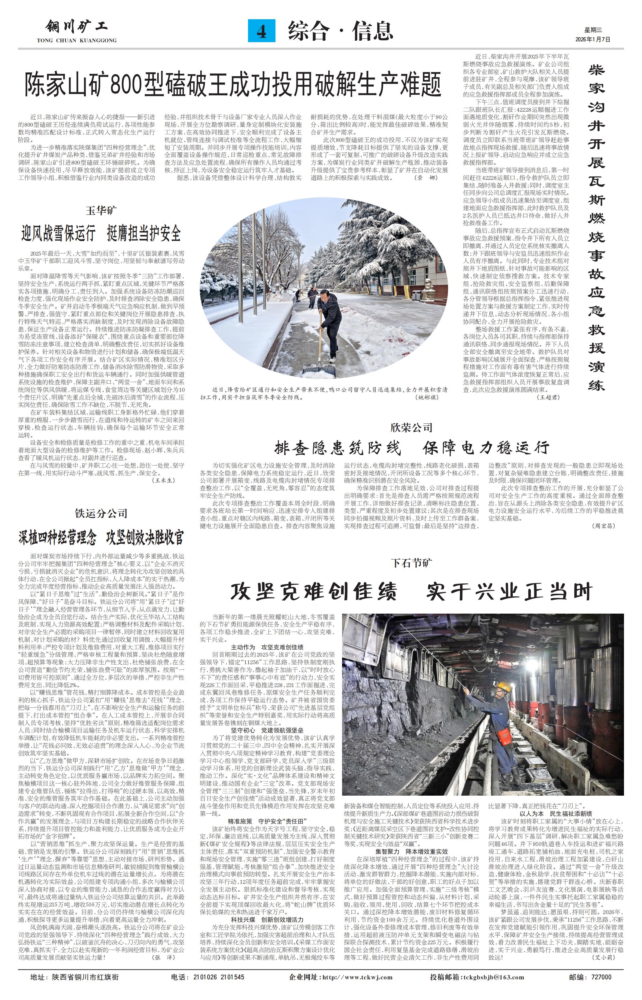 当新年的第一缕晨光照耀蛇山大地,冬雪覆盖的下石节矿勇担能源保供任务,安全生产平稳有序,各项工作稳步推进,全矿上下团结一心,攻坚克难,实干兴业。 主动作为 攻坚克难创佳绩回首刚刚过去的2025年,该矿在公司党政的坚强领导下,锚定“11256”工作思路,坚持铁制度刚执行,勇挑大梁善作为,撸起袖子加油干,以“时时放心不下”的责任感和“事事心中有底”的行动力,安全实现226工作面回采,平稳推进228、231工作面掘进,完成东翼回风巷维修任务,原煤安全生产任务顺利完成,各项工作保持平稳运行态势。矿井被省国资委授予“文明单位标兵”称号,荣获公司“先进基层党组织”等荣誉和安全生产特别嘉奖,用实际行动将高质量发展答卷镌刻在铜煤大地上。 坚守初心 党建领航强堡垒为了将党建优势转化为发展优势,该矿认真学习贯彻党的二十届三中、四中全会精神,扎实开展深入贯彻中央八项规定精神学习教育,构建“党委理论学习中心组领学、党支部研学、党员深入学”三级联动学习体系,用党的创新理论武装头脑、指导实践、推动工作。深化“实·文化”品牌体系建设和精神文明建设,推动国有企业“三定”改革。党支部现场安全管理“三三制”创建和“强堡垒、当先锋、岁末年初百日安全生产创佳绩”活动成效显著,真正将党支部战斗堡垒作用和党员先锋模范作用发挥在攻坚克难第一线。 精准施策 守护安全“责任田”该矿始终将安全作为天字号工程,坚守安全、稳定、环保、廉洁底线,以高质量发展为主线,深入贯彻新《煤矿安全规程》等法律法规,层层压实安全生产主体责任,落实“双重预防机制”,加强安全警示教育和现场安全管理,实施“零三违”班组创建,打好制度强基、管理赋能、考核激励“组合拳”,加快推进安全治理模式向事前预防转型。扎实开展安全生产治本攻坚三年行动,12项年度任务超前完成,牢牢掌握安全发展主动权。狠抓标准化建设和督导考核,实现动态达标目标。矿井安全生产组织井然有序,在安全前提下实现顶煤回收最大化,将“蛇山牌”优质环保长焰煤的光和热送进千家万户。 科技兴煤 创新创效增活力为充分发挥科技兴煤优势,该矿以劳模创客工作室和工匠学院为依托,加强灾害超前治理和人才队伍培养,持续深化全员创新和安全培训。《采煤工作面安装系统方案优化》《超高点防治瓦斯积聚方案设计优化与应用》等创新成果不断涌现,单轨吊、无极绳绞车等新装备和煤仓智能控制、人员定位等系统投入应用,持续提升新质生产力。《深部煤矿巷道围岩动力损伤破裂机理与安全施工关键技术》荣获陕西省科学技术进步奖;《近距离煤层采空区下巷道围岩支护-改性协同控制关键技术研究》荣获陕西省“三新三小”创新竞赛二等奖,实现安全与效益“双赢”。 集智聚力 降本增效重实效在深培厚植“四种经营理念”的过程中,该矿持续深化降本增效,通过开展“四种经营理念”大讨论活动,激发群智群力,挖掘降本潜能,实施内部对标,将单位的好做法、干部的好创意、职工的好点子加以推广应用。加强全面预算管理,实施“三级考核”模式,做好预算过程管控和动态纠偏,从材料计划、采购、验收、领用、使用、回收、结算七个环节把控成本关口。通过深挖降本增效潜能,废旧材料修复循环利用,节约资金100 余万元。持续优化巷道外围设计、强化设备外委修理成本管理、修旧利废等有效举措,运用超前液压防冲单元支架和瞬变电磁法与钻探联合探测技术,累计节约资金225万元。积极履行国企社会责任,利用复垦基金完成道路修缮、滑坡治理等工程,做好民营企业清欠工作,非生产性费用同比显著下降,真正把钱花在“刀刃上”。 以人为本 民生福祉添新绩该矿时刻将职工家属的“大事小情”放在心上,将学习教育成果转化为增进民生福祉的实际行动,深入开展“四下基层”调研,解决职工家属急难愁盼问题46项。井下950轨道巷人车投运和进矿福兴路竣工通车,道路拓宽铺柏油,地面充电桩、司机之家投用,自来水工程、滑坡治理工程加紧建设,白矸山滑坡治理进入绿化阶段。通过“两堂一舍”升级改造、健康体检、金秋助学、扶贫帮困和“十必访”“十必贺”等举措的实施,搭建党群干群连心桥。庆新春职工文艺晚会、羽乒友谊赛、文化展演、电影展映等活动轮番上演,一件件民生实事托起职工家属稳稳的幸福生活,书写出含金量十足的“民生答卷”。梦虽遥,追则能达;愿虽艰,持则可圆。2026年,该矿紧跟公司发展步伐,秉承“11256”工作思路,不断在发挥党建赋能引领作用,巩固提升安全环保管理水平,保障矿井安全生产接续,持续提高经营管理成效,着力改善民生福祉上下功夫,脚踏实地,砥砺奋进,实干兴业,勇毅笃行,推进企业高质量发展行稳致远!