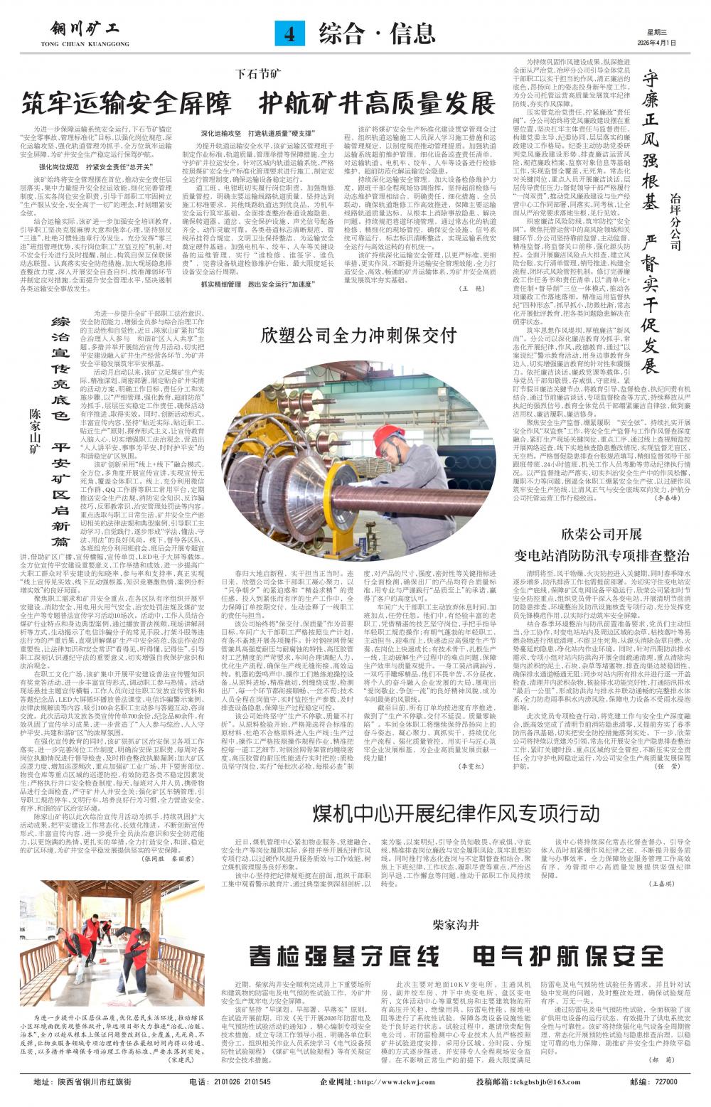 为进一步保障运输系统安全运行,下石节矿锚定“安全零事故、管理标准化”目标,以强化岗位规范、深化运输攻坚、强化轨道管理为抓手,全方位筑牢运输安全屏障,为矿井安全生产稳定运行保驾护航。强化岗位规范 拧紧安全责任“总开关” 该矿始终将安全管理摆在首位,推动安全责任层层落实,集中力量提升安全拉运效能,细化完善管理制度,压实各岗位安全职责,引导干部职工牢固树立“生产服从安全,安全高于一切”的理念,时刻绷紧安全弦。 结合运输实际,该矿进一步加强安全培训教育,引导职工坚决克服麻痹大意和侥幸心理,坚持狠反“三违”,杜绝习惯性违章行为发生。充分发挥“零三违”班组管理优势,实行岗位职工“互监互控”机制,对不安全行为进行及时提醒、制止,构筑自保互保联保动态联盟。认真落实安全防范措施,加大现场隐患排查整改力度,深入开展安全自查自纠,找准薄弱环节并制定应对措施,全面提升安全管理水平,坚决遏制各类运输安全事故发生。深化运输攻坚 打造轨道质量“硬支撑” 为提升轨道运输安全水平,该矿运输区管理班子制定作业标准、轨道质量、管理举措等保障措施,全力守护矿井拉运安全。针对区域内轨道运输系统,严格按照煤矿安全生产标准化管理要求进行施工,制定安全运行管理制度,确保运输设备稳定运行。 道工班、电钳班切实履行岗位职责,加强维修质量管控,明确主要运输线路轨道质量,坚持达到施工标准要求,其他线路轨道达到优良品,为机车安全运行筑牢基础。全面排查整治巷道设施隐患,确保转道器、道岔、安全保护设施、声光信号配备齐全、动作灵敏可靠。各类巷道标志清晰规范,管线吊挂符合规定,文明卫生保持整洁,为运输安全奠定硬件基础。加强电机车、绞车、人车等关键设备的运维管理,实行“谁检修、谁签字、谁负责”,完善设备轨道检修维护台账,最大限度延长设备安全运行周期。抓实精细管理 跑出安全运行“加速度” 该矿将煤矿安全生产标准化建设贯穿管理全过程,组织轨道运输施工人员深入学习施工措施和运输管理规定,以制度规范推动管理提质。加强轨道运输系统超前维护管理,细化设备巡查责任清单,对运输轨道、电机车、绞车、人车等设备进行检修维护,超前防范化解运输安全隐患。 持续深化运输安全管理,加大设备检修维护力度,跟班干部全程现场协调指挥,坚持超前检修与动态维护管理相结合,明确责任、细化措施、全员联动,确保轨道维修工作高效推进,保障主要运输线路轨道质量达标,从根本上消除事故隐患、解决问题。持续规范巷道环境管理,通过常态化的轨道检修、精细化的现场管控,确保安全设施、信号系统可靠运行,标志标识清晰整洁,实现运输系统安全运行与高效运转的有机统一。 该矿持续深化运输安全管理,以更严标准、更细举措、更实作风,不断提升运输安全管理效能,全力打造安全、高效、畅通的矿井运输体系,为矿井安全高质量发展筑牢夯实基础。
